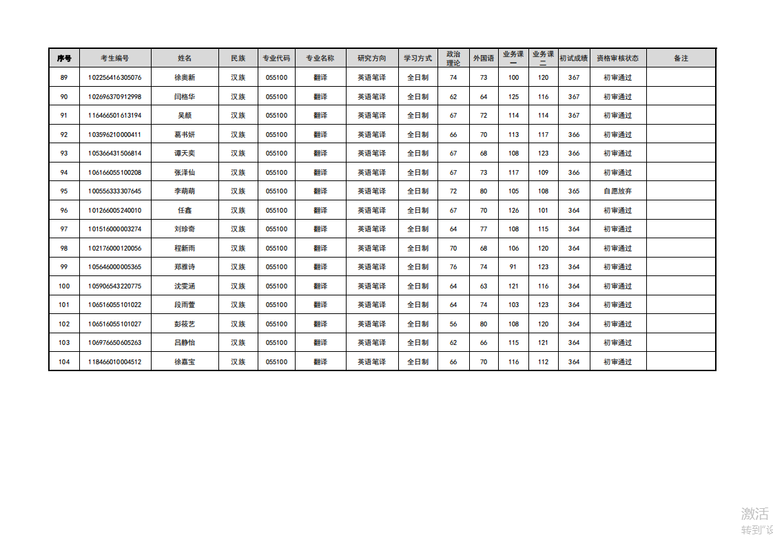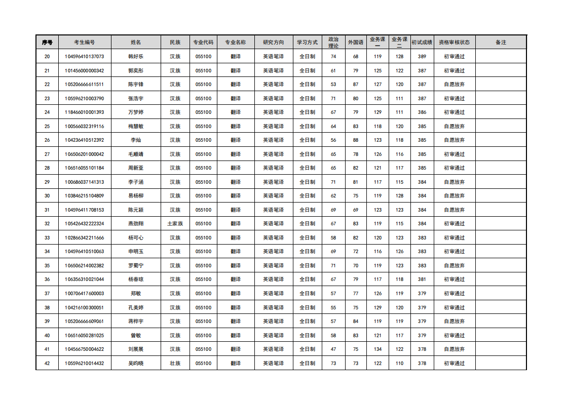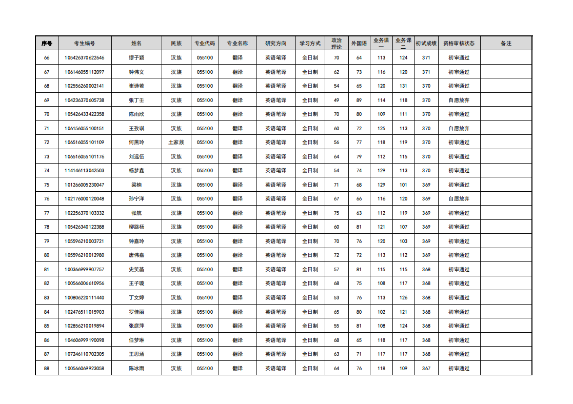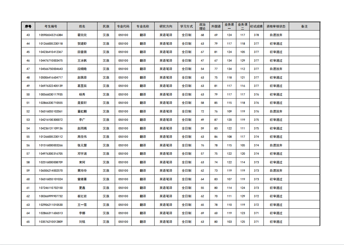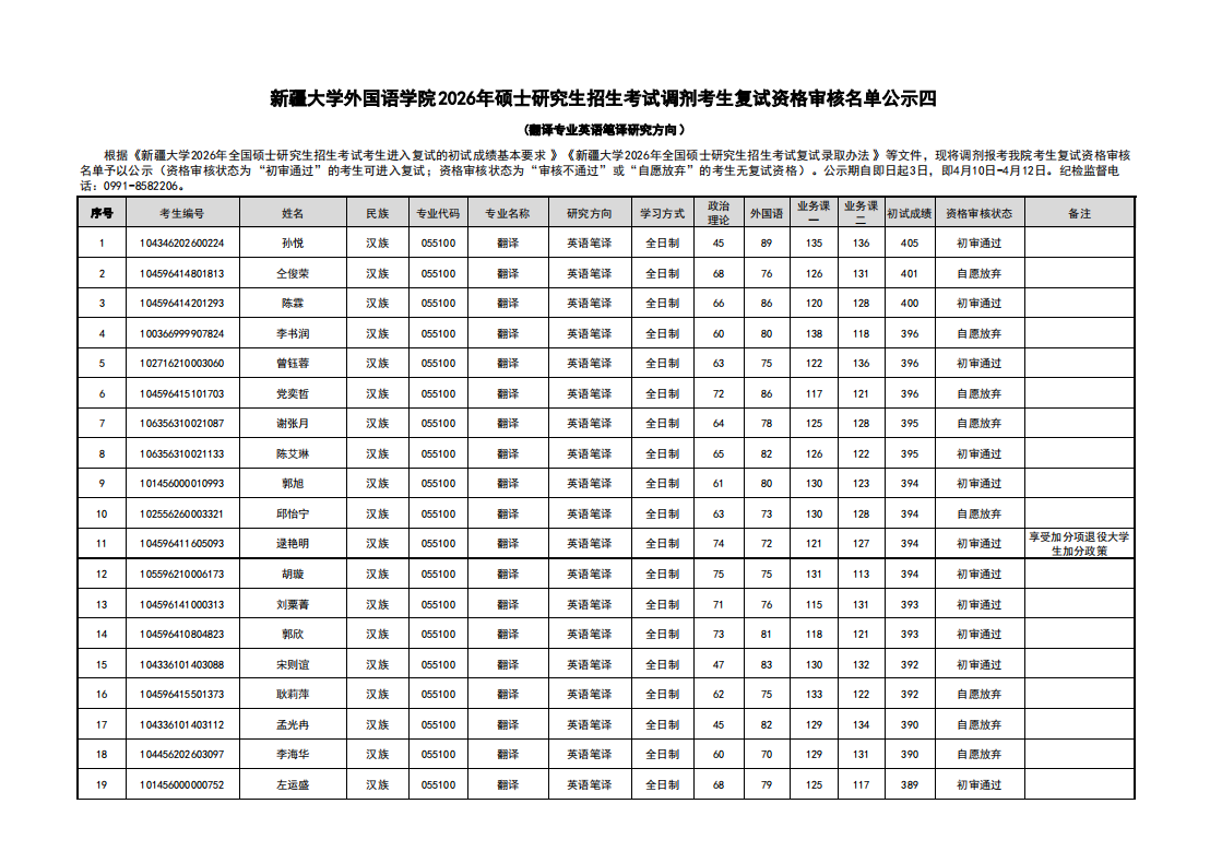 新疆大学外国语学院2026年硕士研究生招生考试调剂考生复试资格审核名单公示四